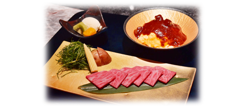 ミニサラダ・焼野菜・薄切り黒毛和牛ステーキ50g・特製オムライス・アイスクリーム・ジュース- 4,400 円